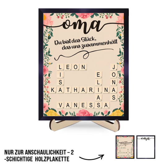 Du bist das Stück-Personalisierte Holzplakette mit Kreuzworträtsel