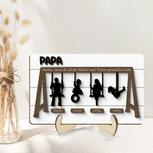Die Familie auf der Schaukel-Personalisierte Holzplakette für Vater und Mutter