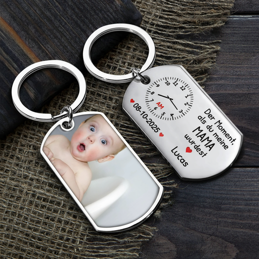 Der Moment als du... Edelstal-Schlüsselanhänger mit Foto, Datum und Name Geschenk für Papa und Mama