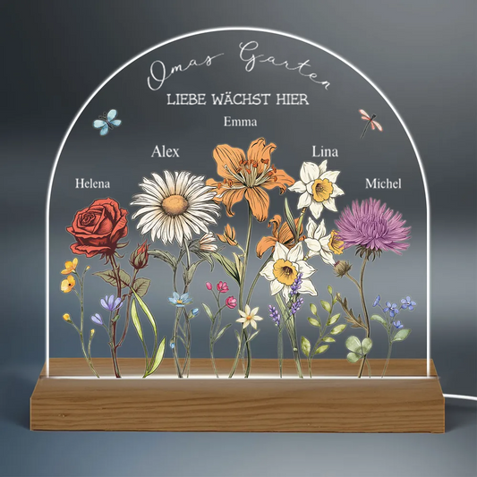 Garten mit Geburtsblumen-Personaisiertes Nachtlicht für Mutter und Großmutter