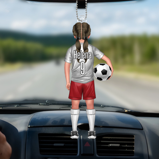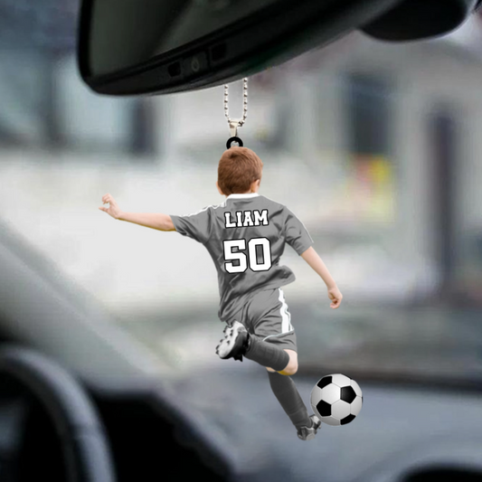 Fußballkind-Personalisierter Autoanhänger aus Acryl Geschenk für Junge