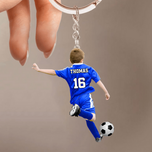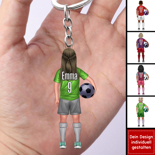 Fußballkind-Personalisierter Schlüsselanhänger für Sohn und Tochter