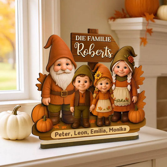 Gnomenfamilie Herbstsaison Holzplakette mit Namen