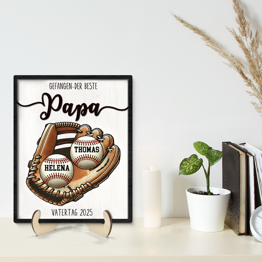 Gefangen...-Personalisierte Holztafel mit Baseballen