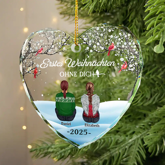 Glasornament in Herzform-Erstes Weihnachten ohne dich-Christbaumanhänger zur Trauer