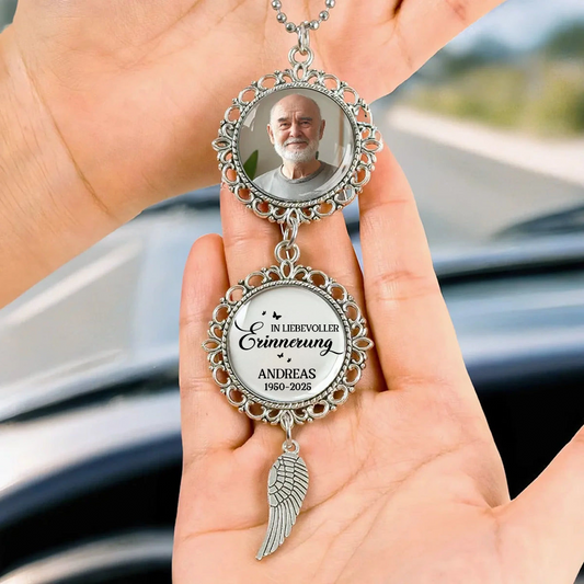 In liebevoller Erinnerung... Metal-Anhänger mit Foto Trauergeschenk
