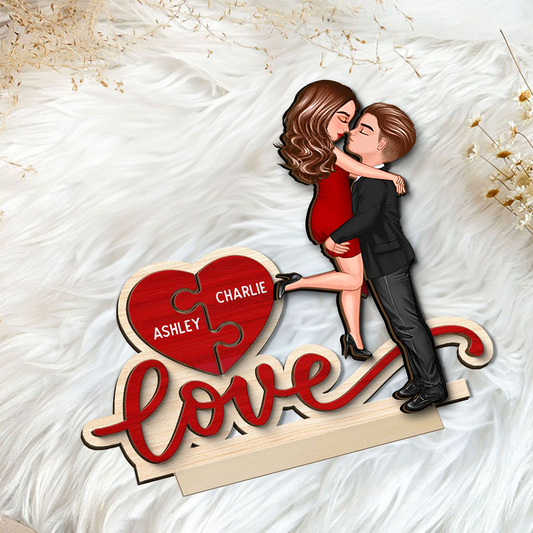 Love- Personalisierte Holztafel mit 2 Figuren und Namen Geschenk für Paar