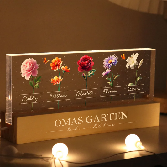 LED-Nachtlicht mit Geburtsblumen und Namen Geschenk für Oma und Mama