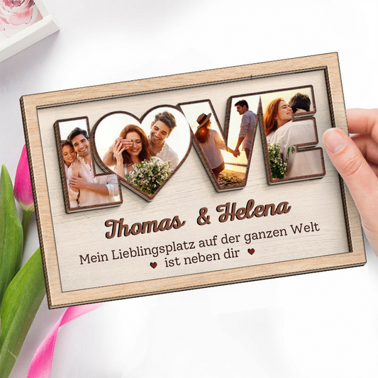LOVE-Personalisierte Holzplakette mit Fotos für Paare
