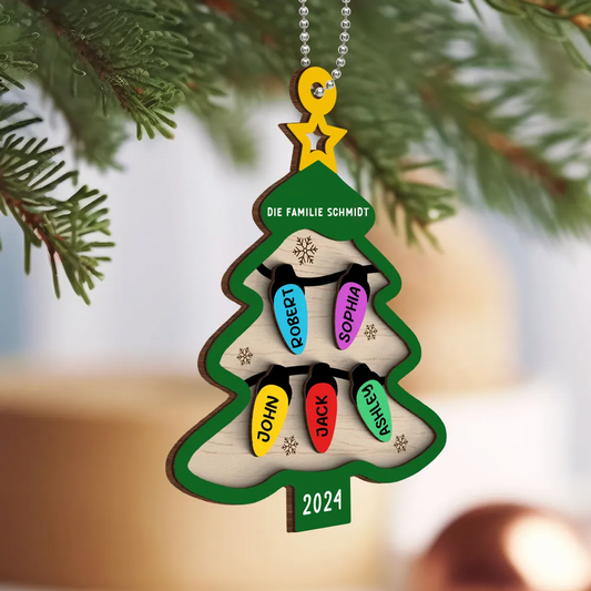 Lichterkette & Weihnachtsbaum-Christbaumschmuck aus Holz mit Namen