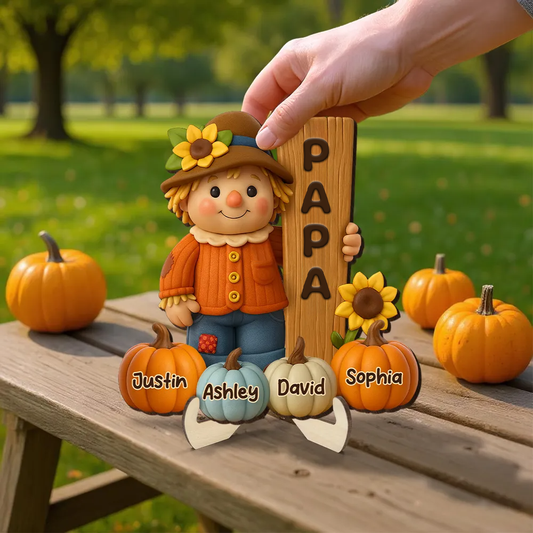 Niedliche Vogelscheuche und Kürbisse - Holztafel mit Namen - Geschenk für Oma