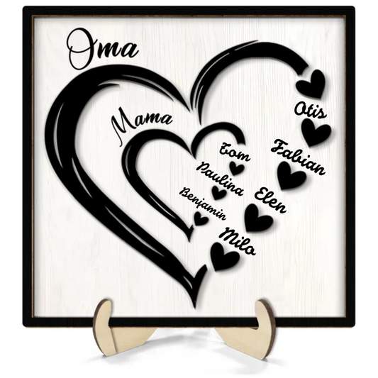 Oma und Mama Herz in Herz Personalisierte 2-Schicht-Holzplakette Muttertagsgeschenk
