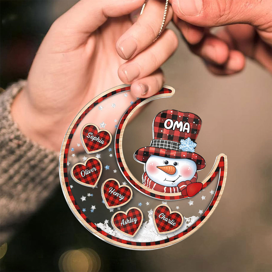 Oma Schneemann auf Mond personalisiert Shaker Ornament, Weihnachtsgeschenk für Oma & Mama