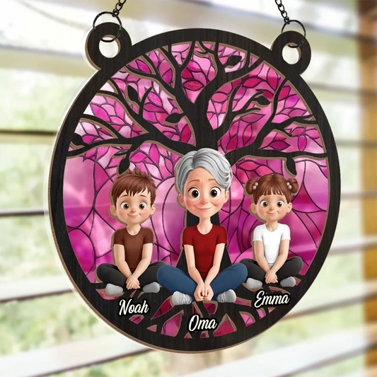 Oma/Mama und Kinder-Personalisierter Sonnenfänger mit Baummotiv