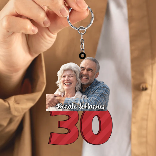 Acryl Schlüsselanhänger mit Foto, Namengravur und Nummer Jahrestag Geschenke