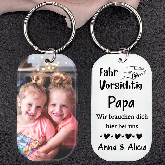 Acryl Foto Schlüsselanhänger- Fahr Vorsichtig Papa/Mama Vatertagsgeschenke Muttertagsgeschenke