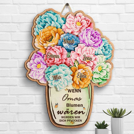 Personalisierbares Holzschild mit Vase Geschenk für Oma