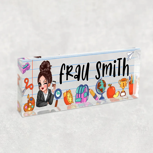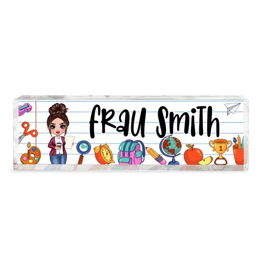 Personalisierte Acryl-Namensplatte – Für Lehrerinnen mit Schulmotiv