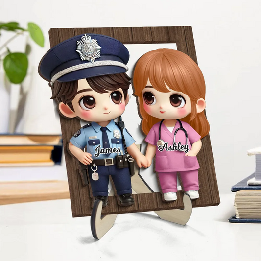 Personalisierte 2-Schicht-Holztafel mit Paar in Berufsbekleidung