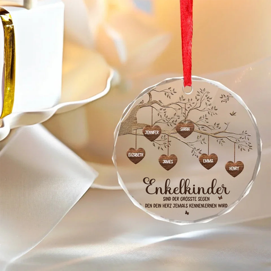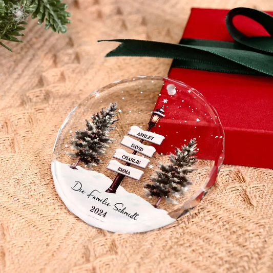 Personalisierter Weihnachtsbaumschmuck – Glas Weihnachtsanhänger mit Familiennamen