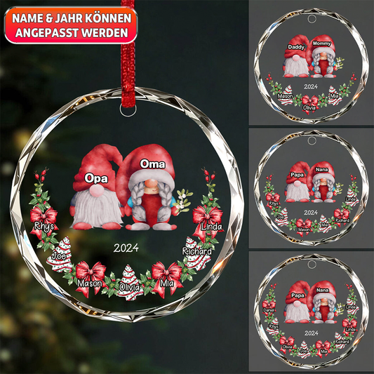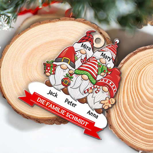 Personalisierter Weihnachtsanhänger mit Weihnachtszwergen – Familie und Jahreszahl anpassbar