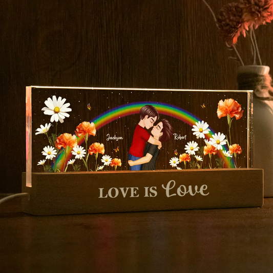 Regenbogen und Geburtsblumen-Personalisiertes LED Nachtlicht Geschenk für Paar LGBT