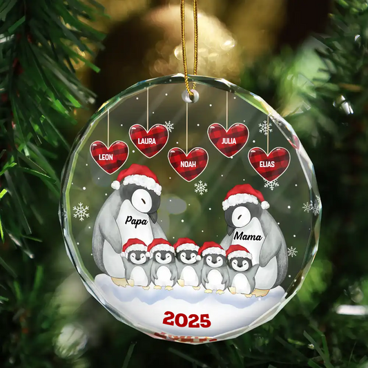 Pinguin-Familie Personalisierter Glasanhänger Christbaumschmuck