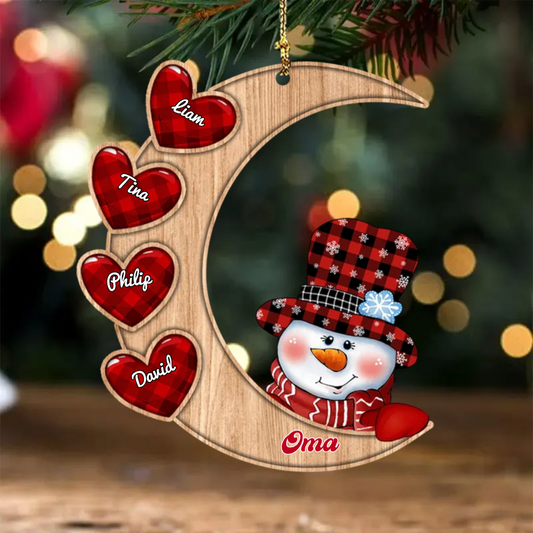 Schneemann Oma Mama auf Mond mit 2-11 Namen Weihnachtsschmuck