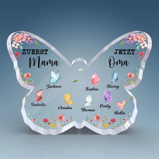 Schmetterling Acrylplakette Zuerst..Jetzt...-Personalisierte Geschenke für Mama und Oma