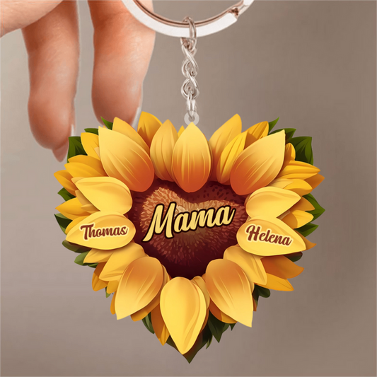 Sonnenblume in Herzform-Personalisierter Acryl-Schlüsselanhänger für Mama und Oma
