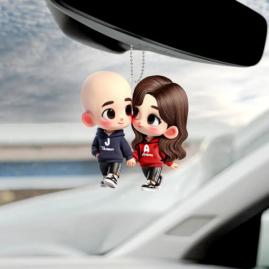 Süßes Cartoon-Paar – Personalisierter Auto-Acrylanhänger