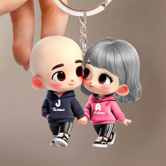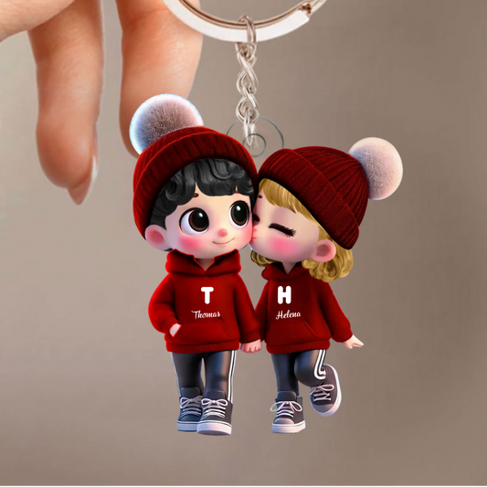 Süßes Cartoon-Paar – Personalisierter Auto-Acrylschlüsselanhänger
