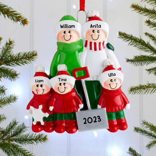 Weihnachtsschmuck Familie Schneeschaufeln mit 2-8 Namen Acrylglasscheibe