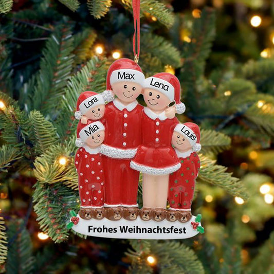 Weihnachtsschmuck Acrylglasscheibe Familie im Schlafanzug mit 3-6 Namen