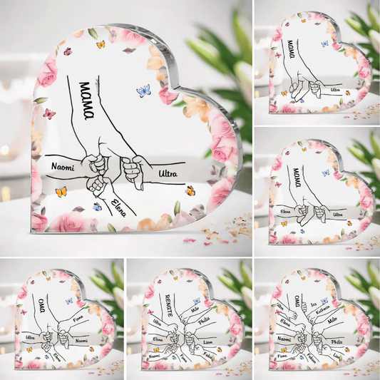 Blumen und Schmetterling Acrylherz mit Händen für Mutter und Großmutter