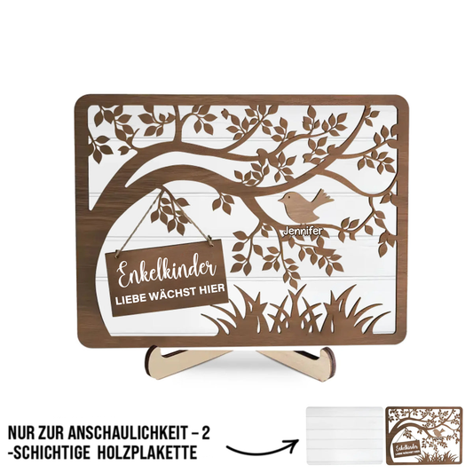 Baum und Vögel-Holzplakette mit 1-10 Namen personalisiert Geschenk für Oma