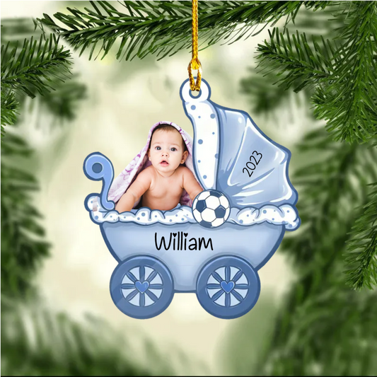 Baby Foto Babywagen Weihnachtsschmuck mit Name Acylschmuck