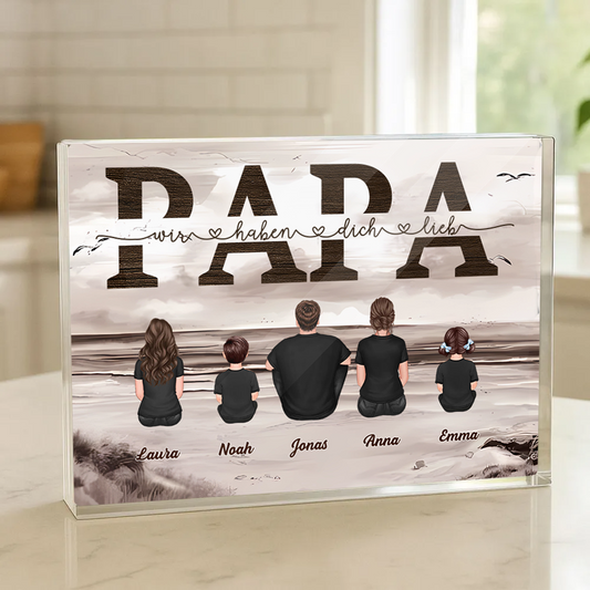 "Papa, wir haben dich lieb" Acrylblock mit Familie für Papa und Opa