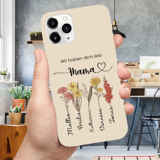 Geburtsblumen - Personalisierter Silikonhandyhülle für iPhone und Samsung Geschenk für Oma und Mama