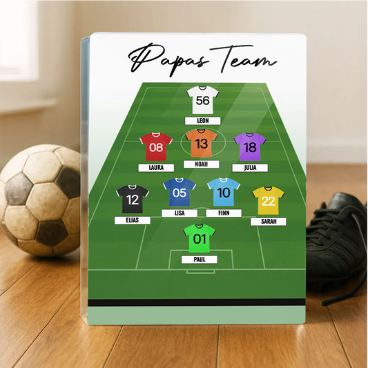 Papas Fußball Team-Acrylblock mit Trikots und Text Geschenk für Papa und Fußballfans