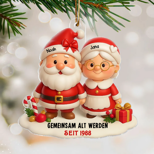 „Gemeinsam alt werden“ – Personalisierter Acryl-Christbaumanhänger mit Weihnachtsmann-Paar