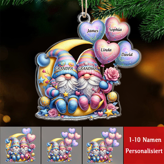 Personalisierter Weihnachtsanhänger mit Zwergenpaar – Bis zu 10 Namen anpassbar