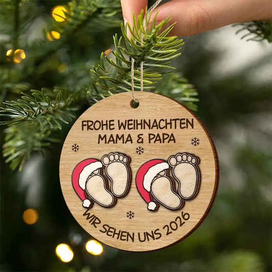 Personalisierter 2-lagiger Holzanhänger „Baby erwartet – wir sehen uns in 2026“ – Schwangerschaftsankündigung