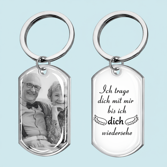 Foto Schlüsselanhänger mit Gravur Edelstahl-Schlüsselanhänger mit Expoxidharz Trauergeschenk