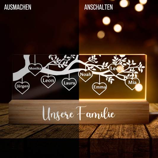 Familienbaum - Personalisierte LED-Nachtlicht mit 1-8 Namen Geschenk für Familie