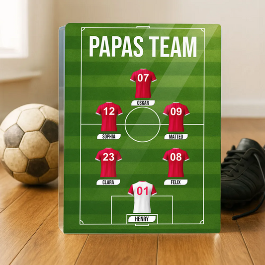 Papas Fußball Team-Acrylblock mit Trikots und Text Geschenk für Papa und Fußballfans