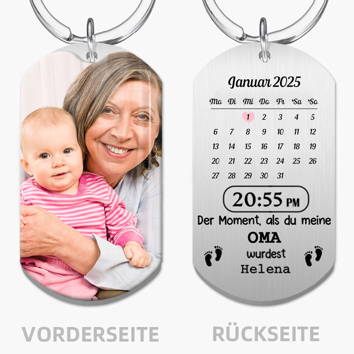 Der Moment als du... Edelstal-Schlüsselanhänger mit Foto, Datum und Name Geschenk für Papa und Mama
