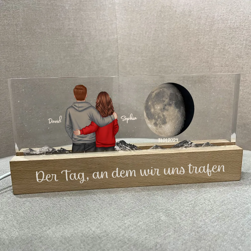 Paar unter dem Mond-Personalisierte LED-Nachtlicht mit Mondphase, Paar und Text