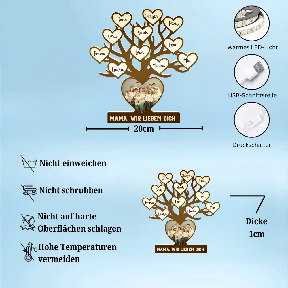 Personalisierte LED-Lichtbox mit Familienbaum Foto-Leuchtbox mit Text und Namen Geschenk für Mama und Oma
