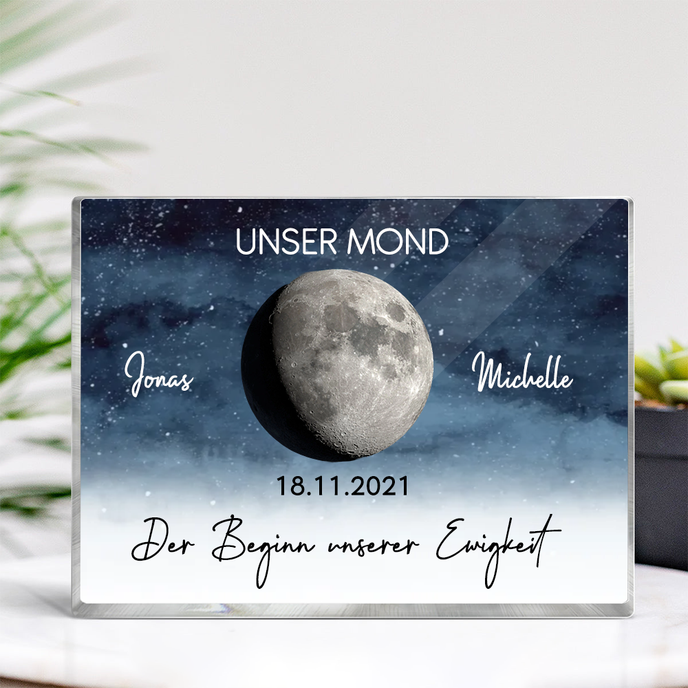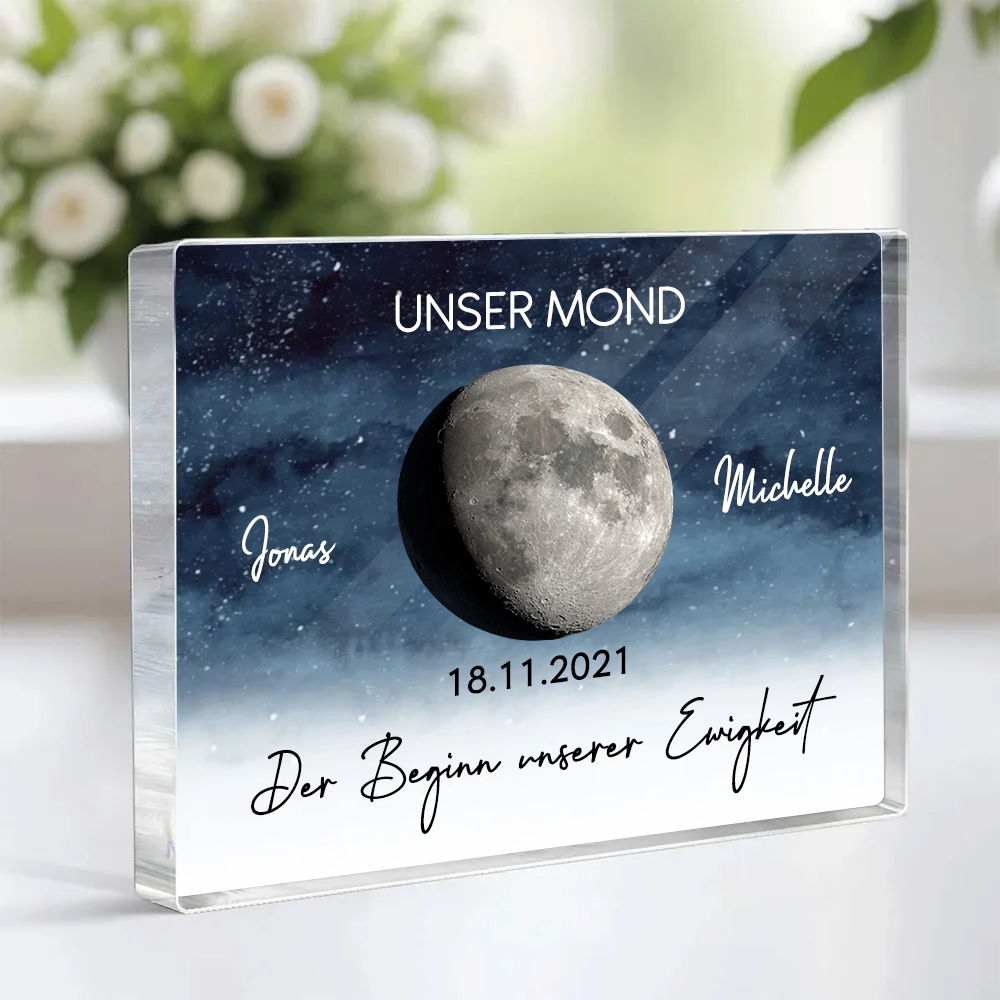 Unser Mond-Personalisierter Acrylblock mit Mondphase Geschenk für Paar